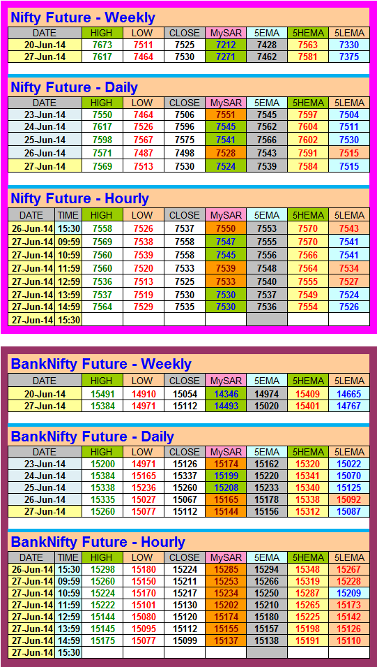 Price of July series is in premium of more than 40 points for nf and 150 points for bnf and closed above developing SAR. Taken long as BTST at 7535 and 15195 as mentioned below.